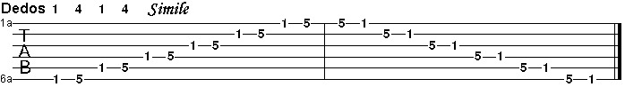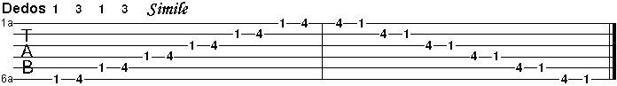 El siguiente ejercicio hay que estudiarlo apoyando el pulgar en la 6ta cuerda.