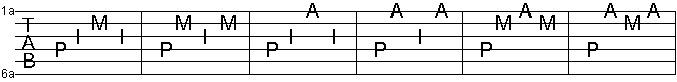 Este es un ejercicio para empezar a desarrollar los dedos alternados. Apoyemos el dedo pulgar en la 6ta cuerda mientras tocamos con el índice y el medio.